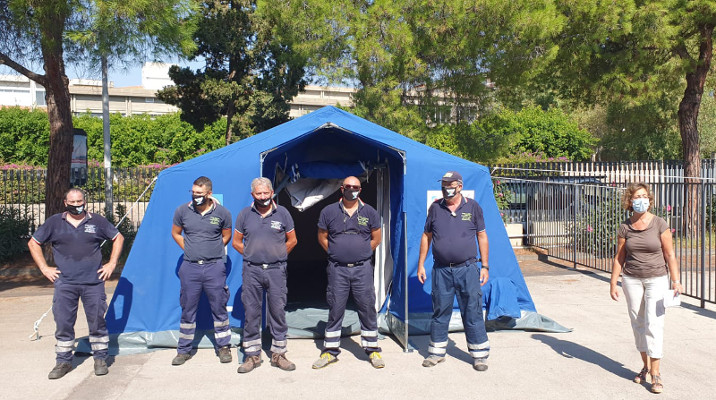 Nella sede succursale del Liceo Scientifico "Galileo Galilei" di Catania, su proposta del Dirigente scolastico, è stata installata una tenda utilizzata come “area grigia” per eventuali casi da isolamento, garantendo la sicurezza e la salute di tutti gli studenti e del personale (nella foto). L'iniziativa è stata realizzata grazie alla proficua collaborazione dell’Azienda Ospedaliera “Cannizzaro”.